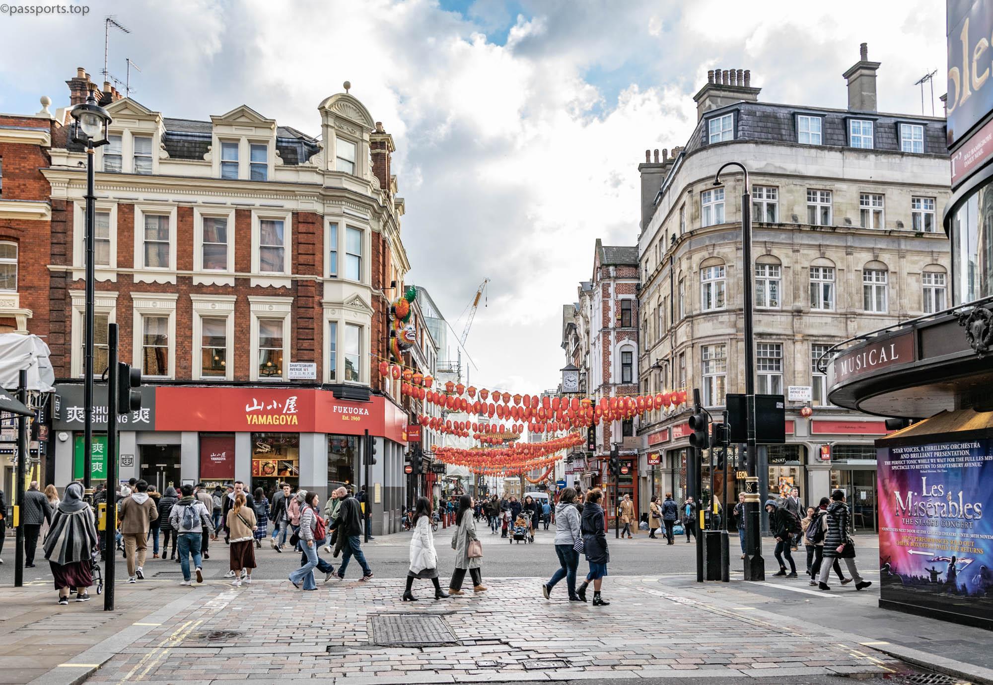 Cartierul chinezesc este plin de restaurante asiatice autentice, supermarketuri și baruri. Cu felinarele chinezești, decorațiunile și arcadele roșii atrăgătoare, este dificil de ratat această zonă. Cartierul chinezesc a început să se formeze în anii ’50, când câteva restaurante asiatice au fost deschise în această zonă. Odată cu mutarea altor afaceri și servicii, în anii ’60 -’70, cartierul a devenit un punct central pentru cultura chineză din Londra.