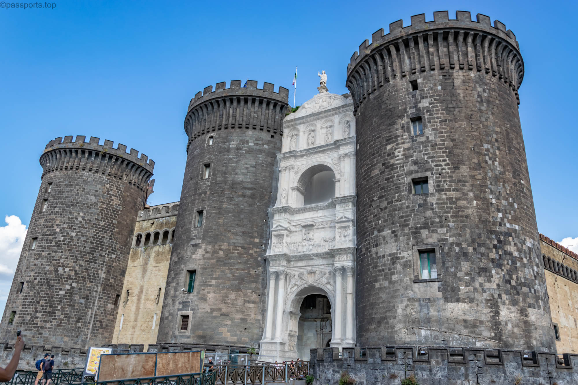 3. Castel Nuovo este o fortăreață medievală impunătoare cu o poartă de intrare în stil renascentist. Castel Nuovo este unul dintre primele obiective pe care le văd oamenii care ajung cu navele de croazieră, fiind poziționat lângă port. Castelul este ușor accesibil și este unul dintre principalele situri istorice din Napoli. Castelul a fost construit în 1282 și găzduiește astăzi Muzeul Municipal al orașului. Biletul de intrare costă 6€/persoană.