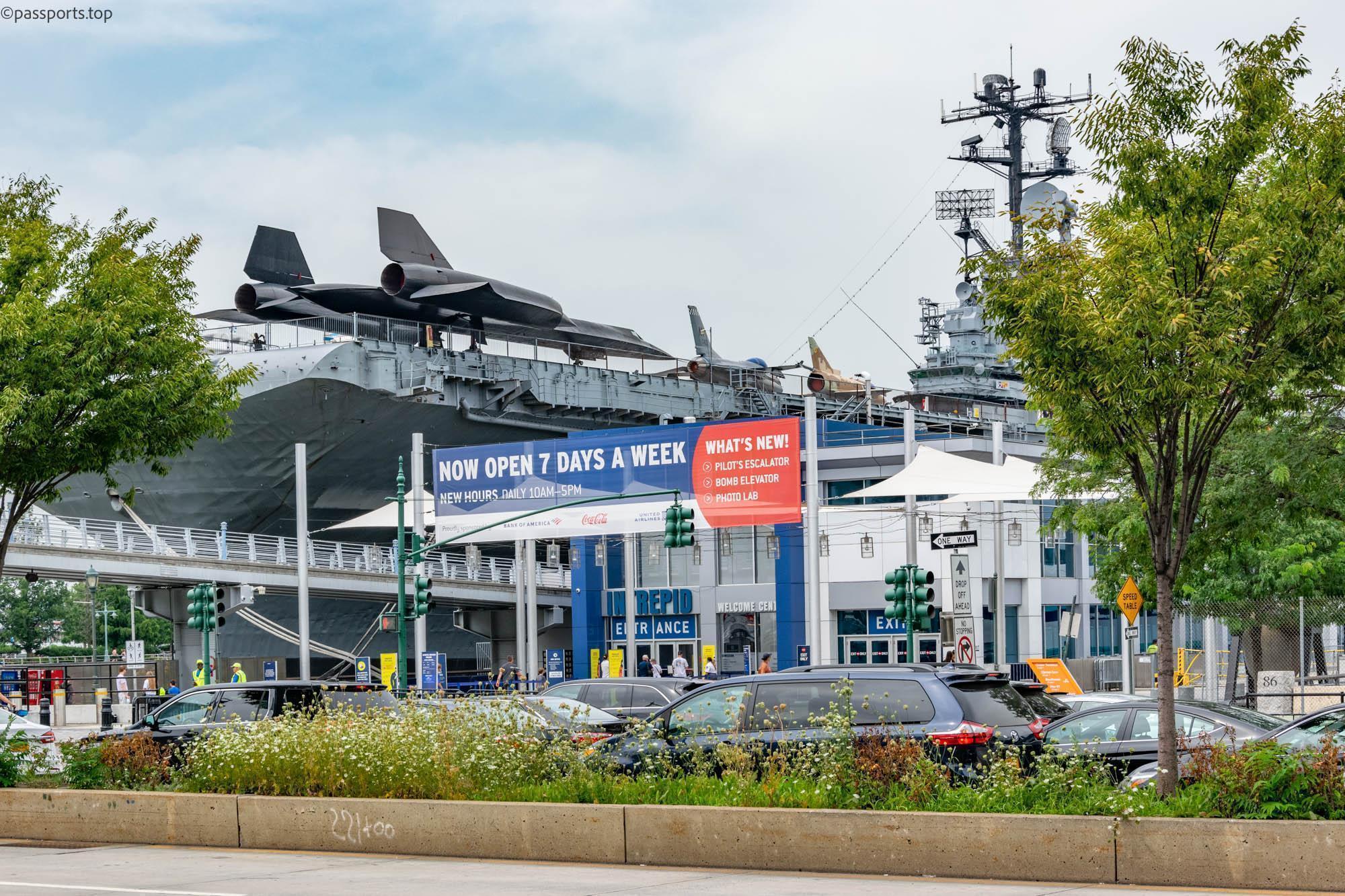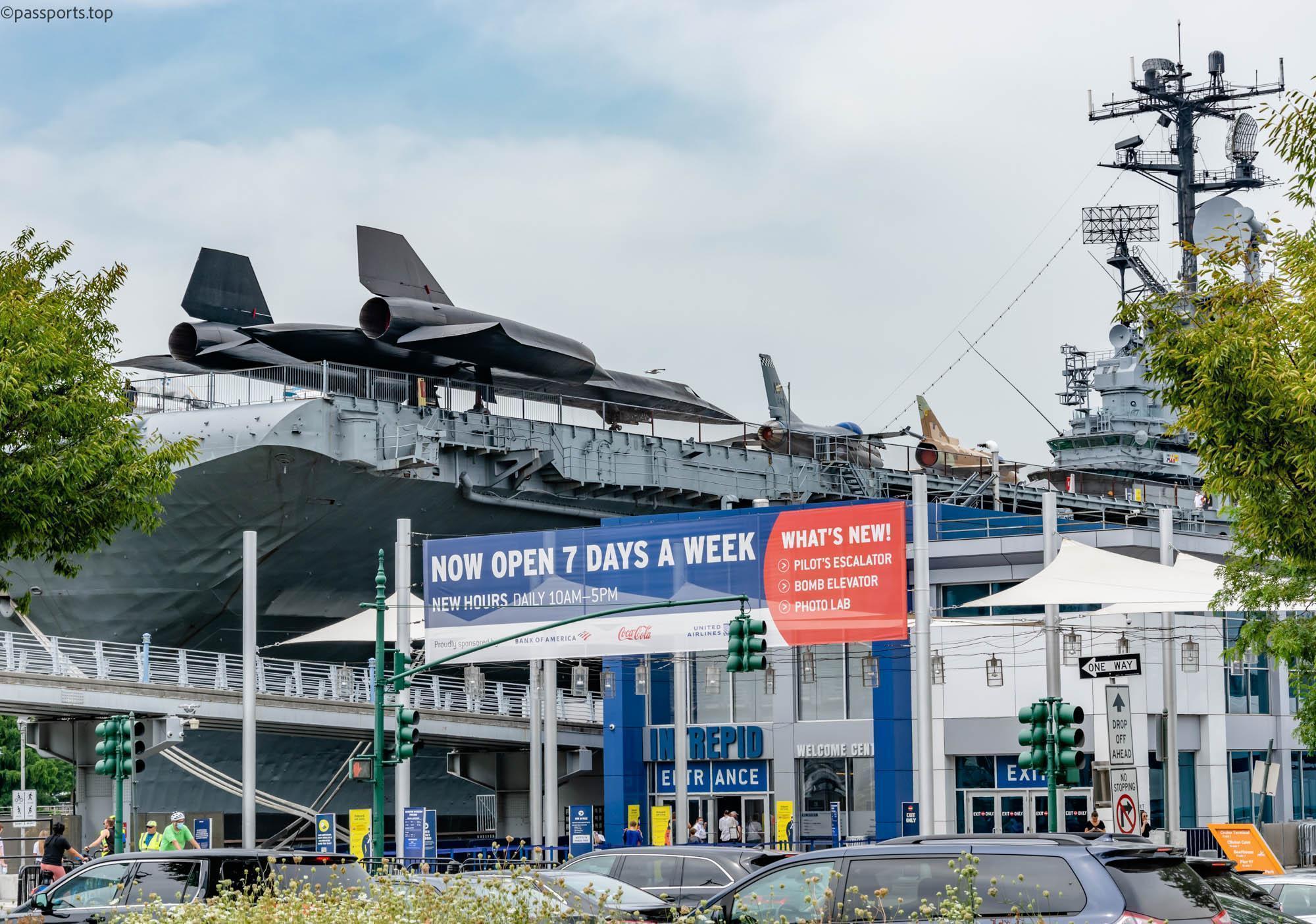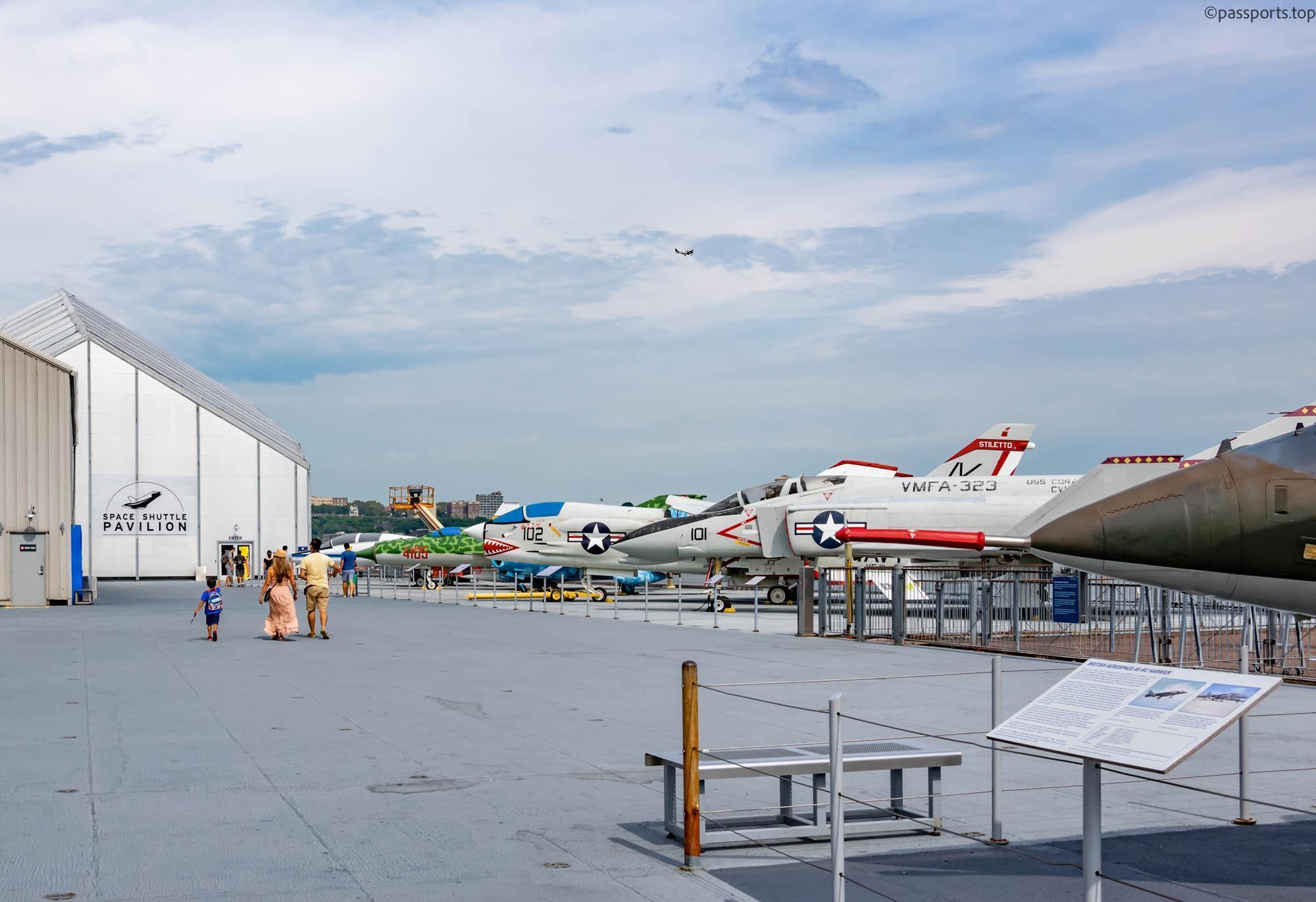 Printre principale elementele ale muzeului se află Portavionul USS Intrepid (1943), care a servit în Pacific în timpul celui de-al doilea război mondial, supraviețuind a cinci atacuri kamikaze și USS Growler (1958): singurul submarin american cu rachete ghidate deschis publicului.