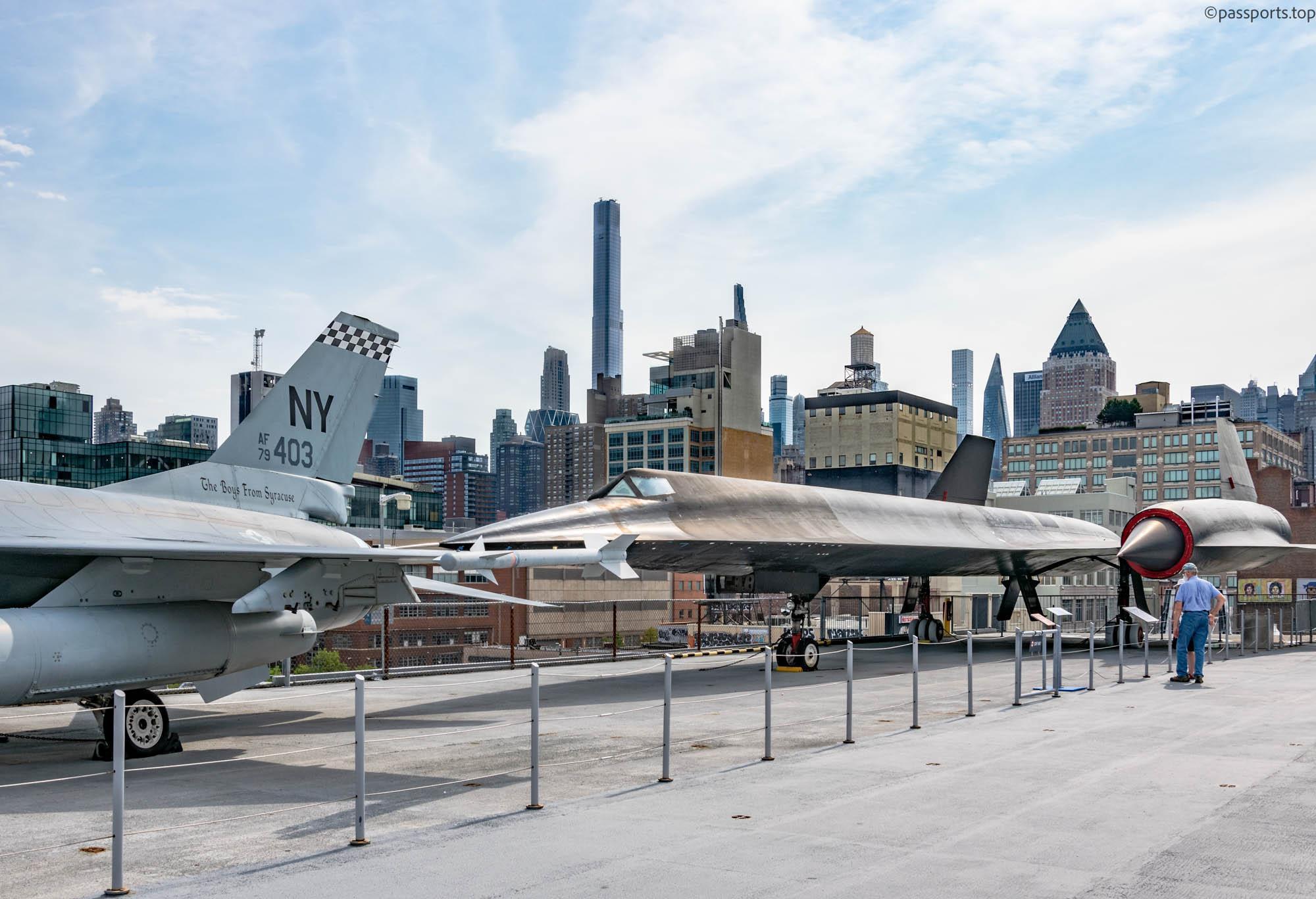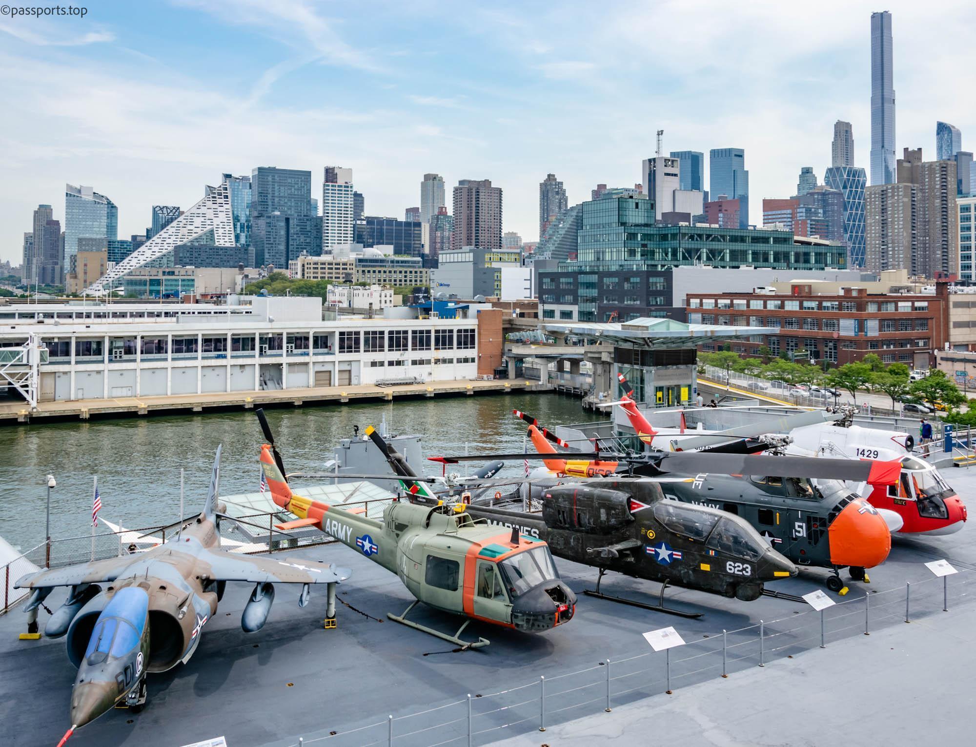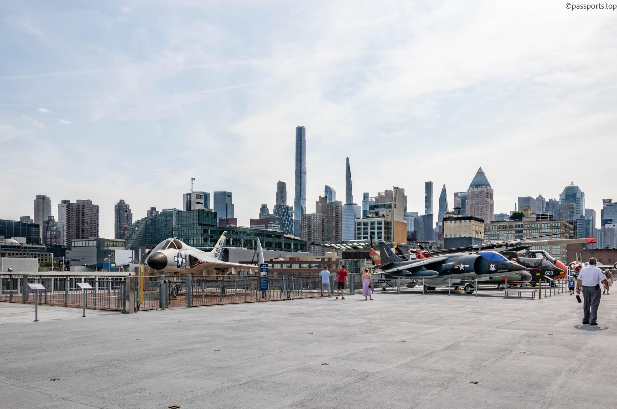 Printre principale elementele ale muzeului se află Portavionul USS Intrepid (1943), care a servit în Pacific în timpul celui de-al doilea război mondial, supraviețuind a cinci atacuri kamikaze și USS Growler (1958): singurul submarin american cu rachete ghidate deschis publicului.