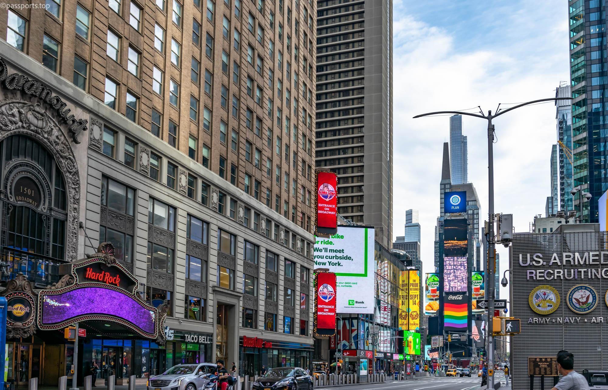 Times Square este cea mai animată zonă din oraș, situat la intersecția dintre Broadway și 7th Avenue. Este locul în care veți găsi pe lângă imensele panouri publicitare, baruri, restaurante, teatre, muzee și o atmosferă minunată.