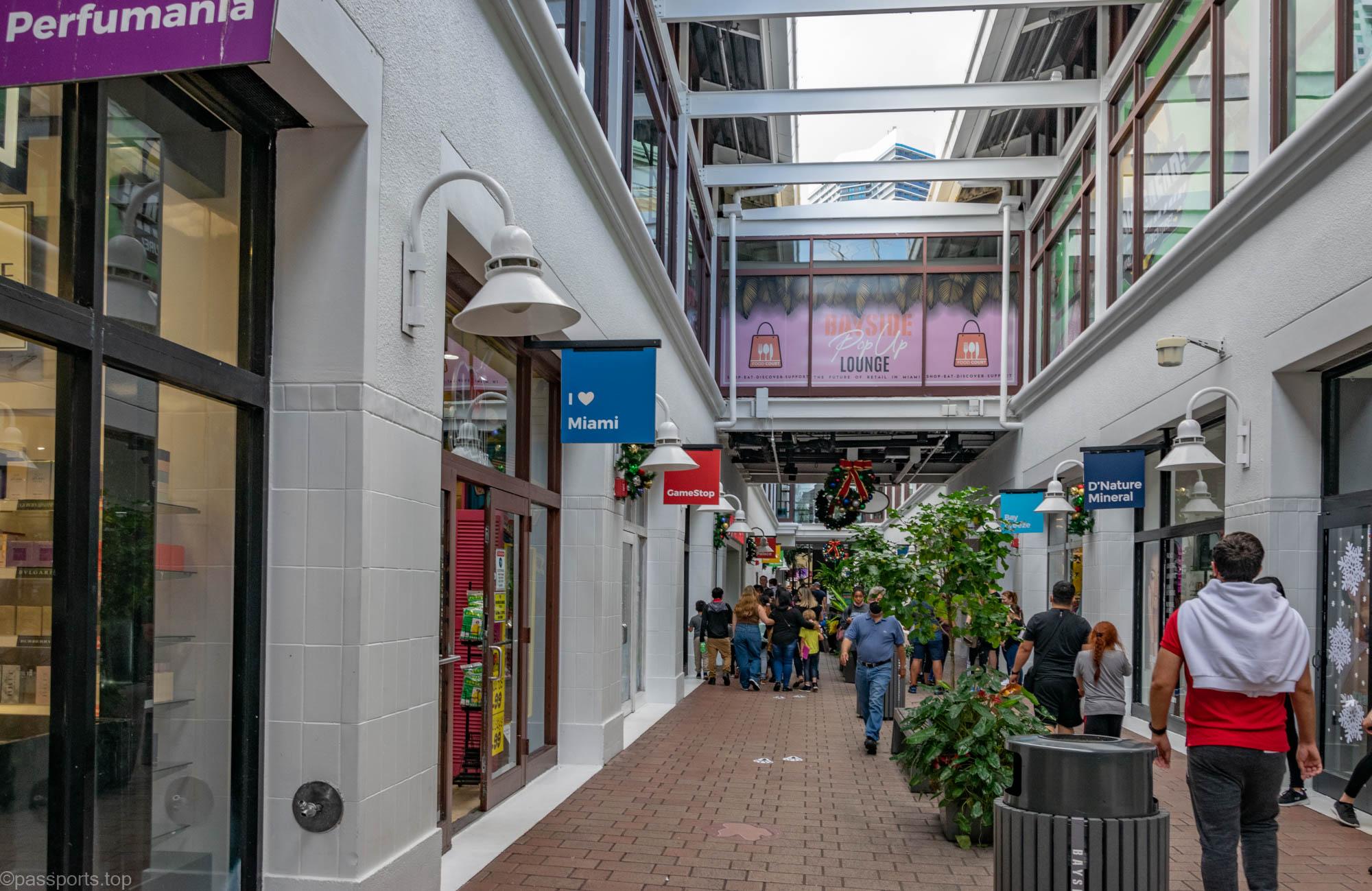 Bayside Marketplace este un centru comercial cu două etaje în aer liber, cu muzică live, restaurante, baruri, buticuri și numeroase magazine.