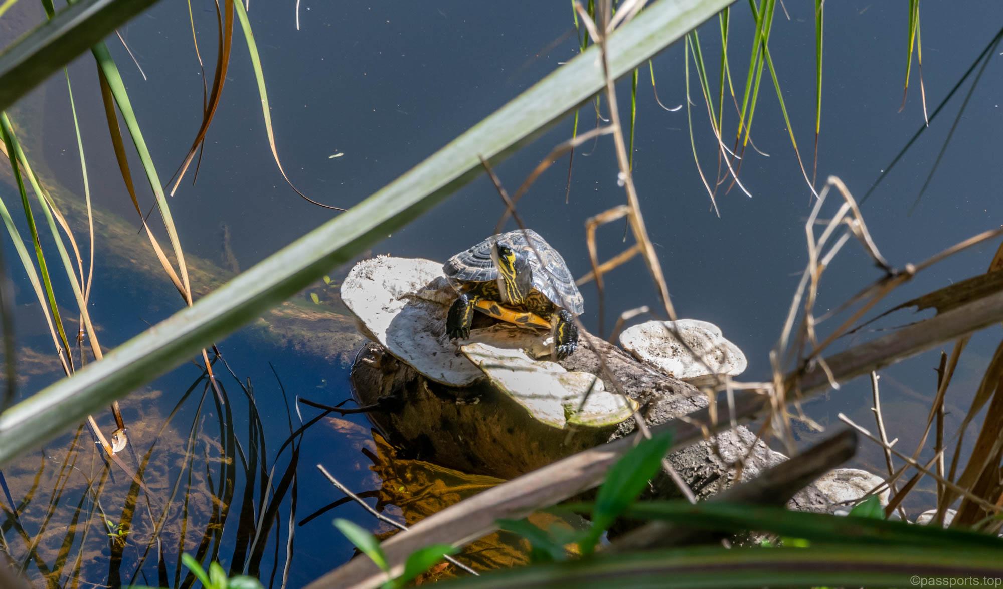 Pârâul era plin de broaște țestoase, iar în apa limpede se vedeau cu ușurință bancuri de pești și chiar câțiva aligatori care stăteau la soare.