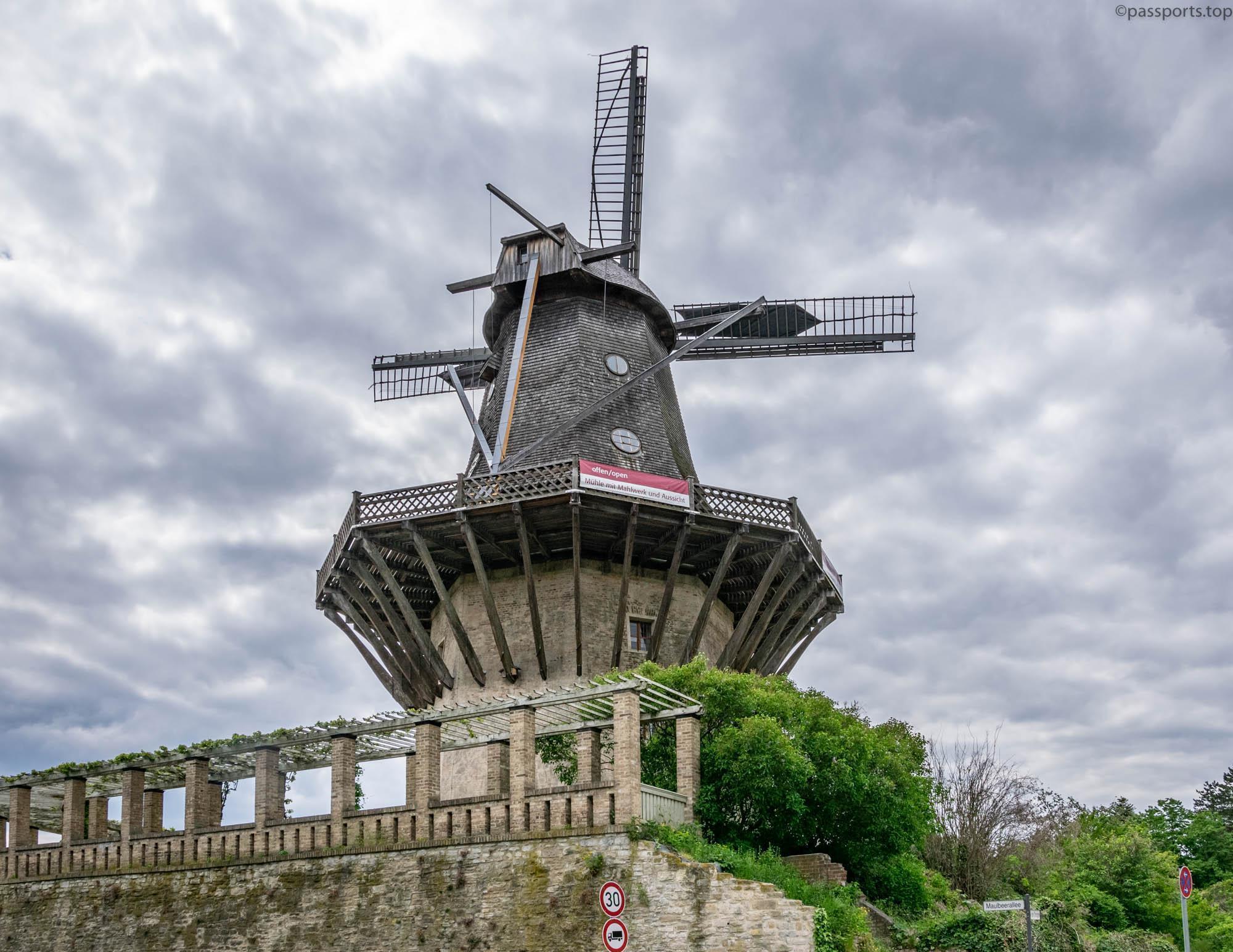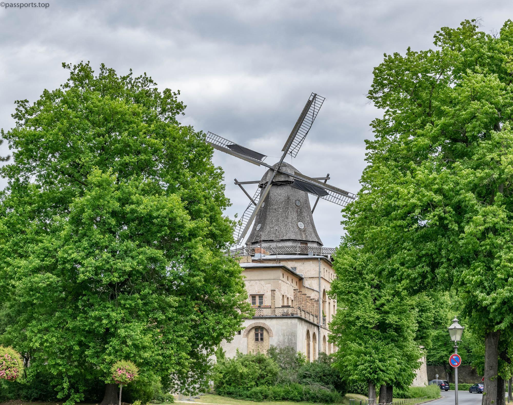 Moara de vânt (Historische Mühle) a Palatului Sanssouci se numără printre cele mai cunoscute mori din Germania. Prima moară de vânt care data din 1738 a trebuit să fie dărâmată din cauza stării de degradare, iar moara cu care a fost înlocuită a fost distrusă în mare parte în timpul celui de-al Doilea Război Mondial. În 1993 a fost reconstruită, iar astăzi își așteaptă vizitatorii cu o expoziție interesantă despre istoria morii și prelucrarea grâului. Din magazinul muzeului puteți achiziționa pâine coaptă făcută din făină de Sanssouci.