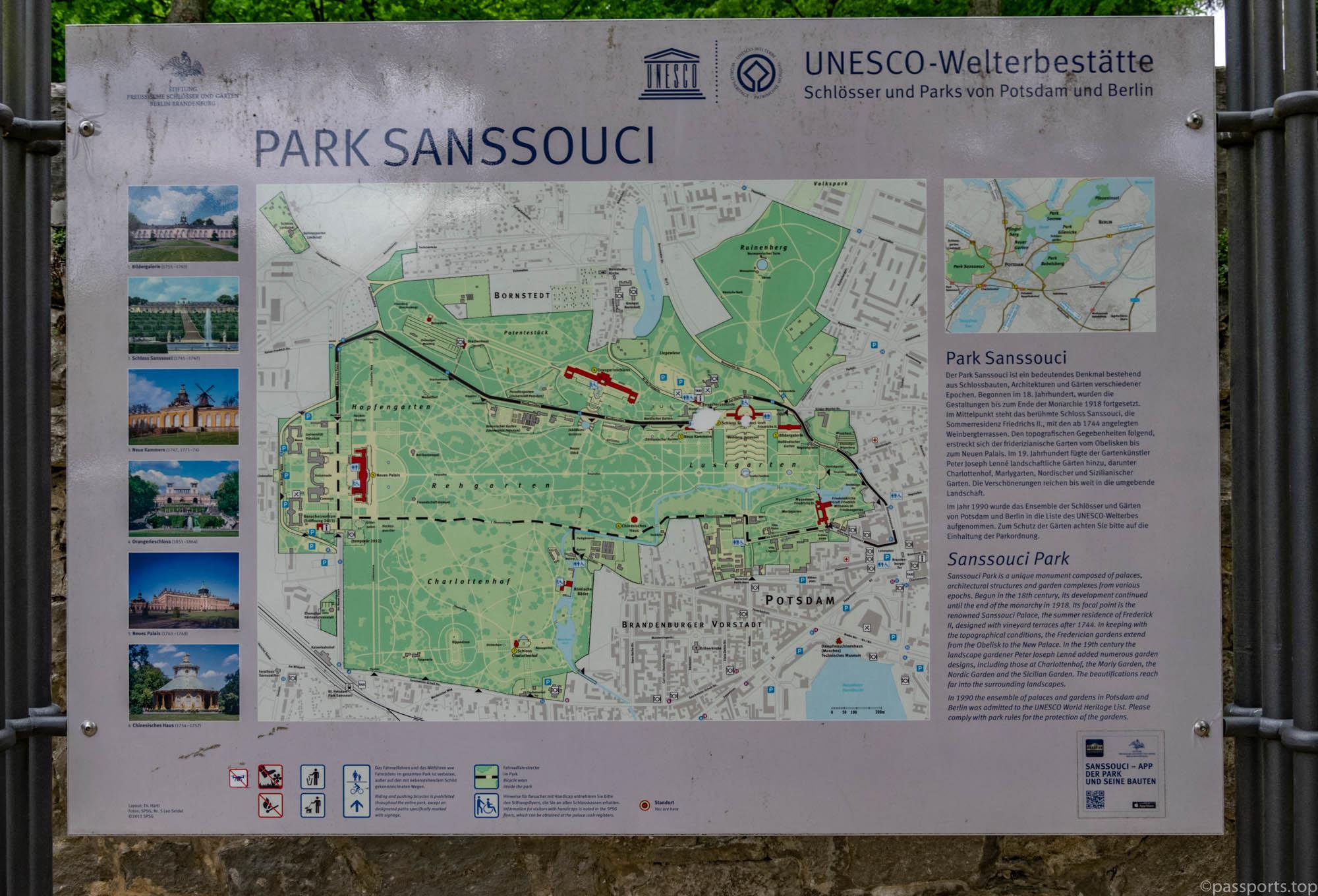 Parcul și Palatul Sanssouci. Cea mai veche parte a parcului datează din 1744, iar împreună cu palatele și restul clădirilor formează un impresionant ansamblu arhitectonic. Din păcate, nu am avut foarte mult timp la dispoziție și am reușit să vizităm doar Orangeria, Moara și o mică parte a parcului.