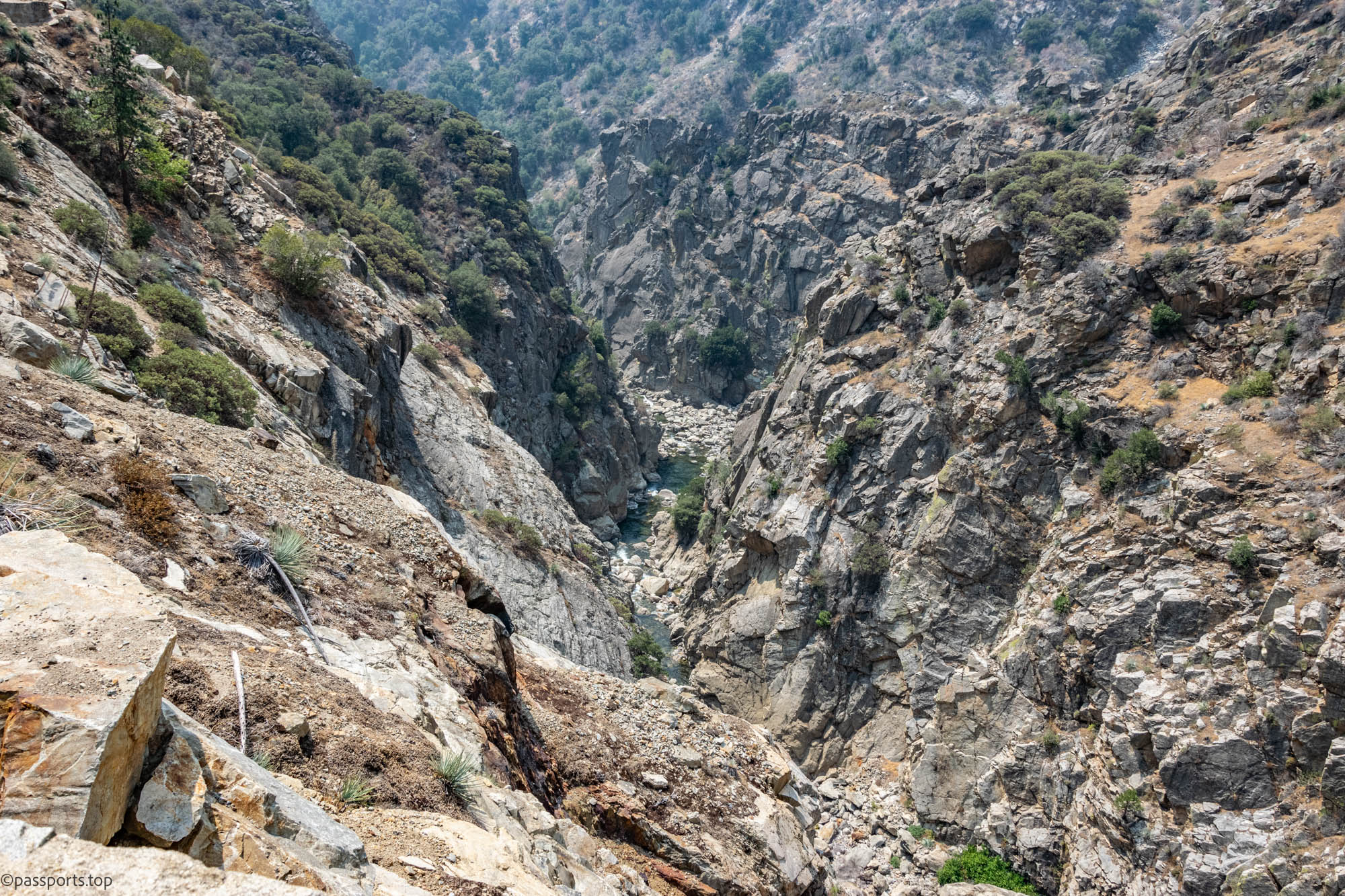 Pe drum ne-am oprit la câteva puncte de belvedere, unul dintre ele fiind Junction View. De aici se poate vedea priveliște uimitoare în jos, în Kings Canyon, unde se ivește râul printre munții falnici.