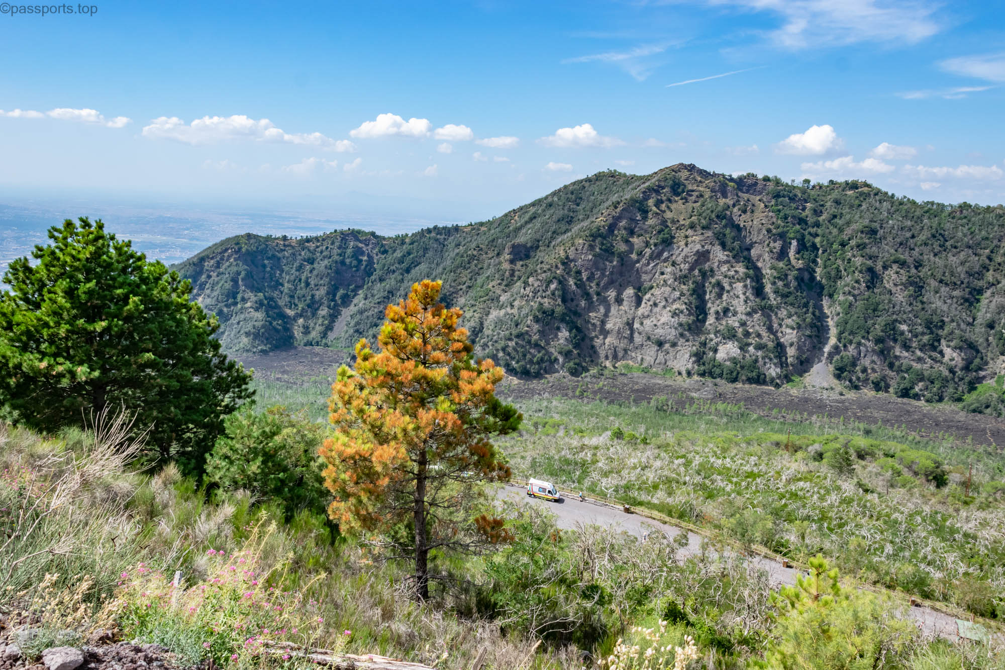 Din Napoli puteți ajunge în doar jumătate de oră cu mașina sau cu autobuzul până la parcarea de la baza muntelui.