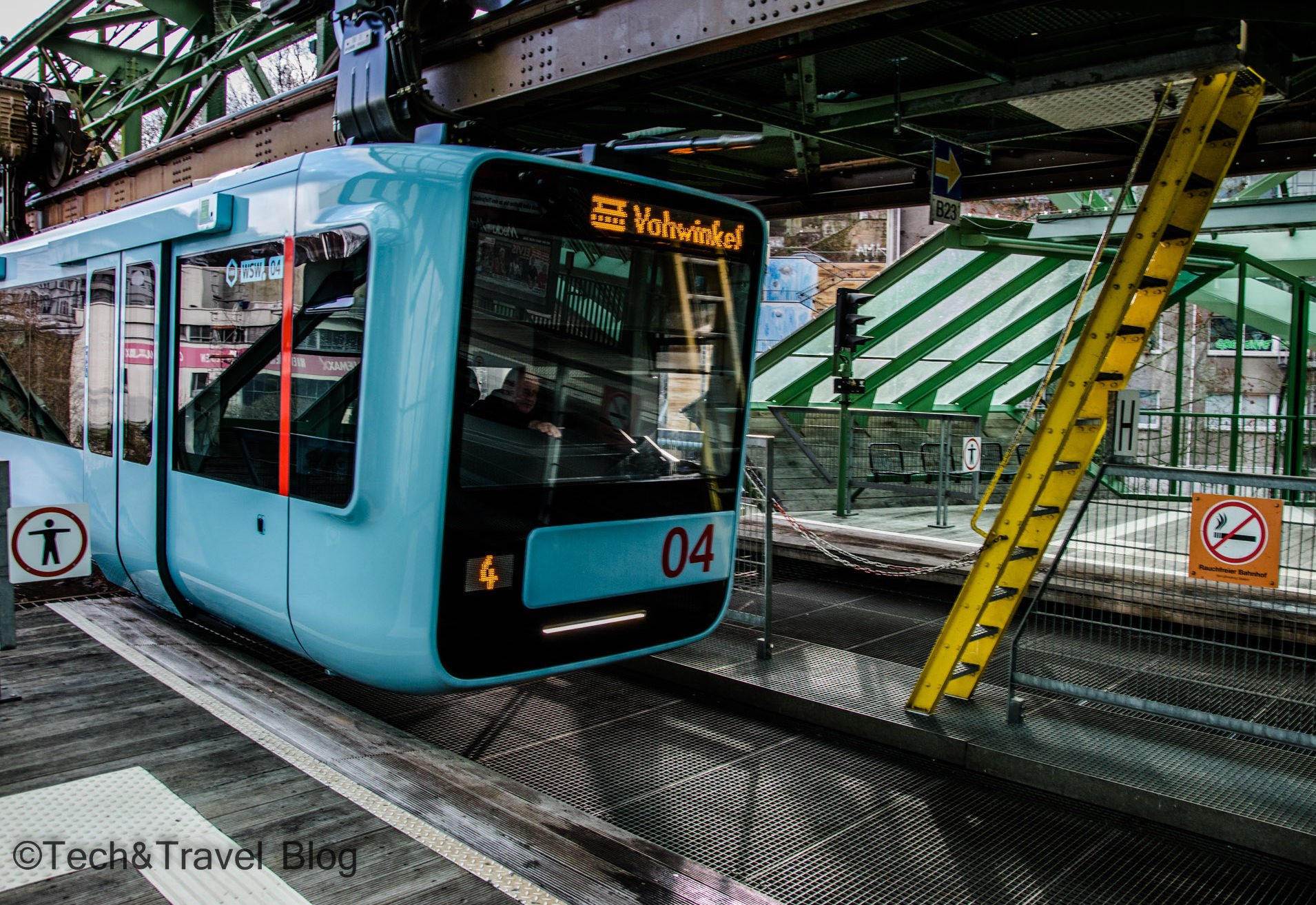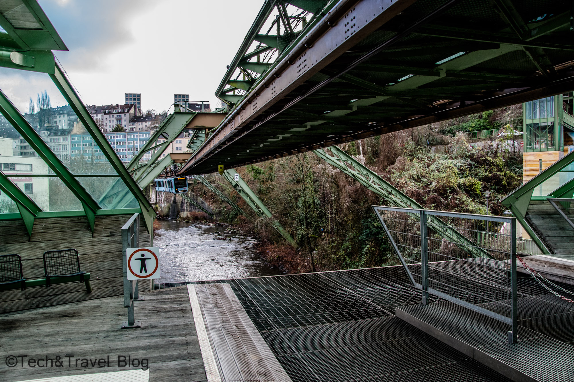 Întregul traseu are o lungime de 13,3 km și se parcurge în aproximativ 30 de minute, timp în care oprește în 20 de stații, distanța medie dintre ele fiind de 700 de metri. Pentru că obiectivele turisice erau închise, ne-am achiziționat un tichet de o zi pentru 2 persoane (9,9€/2 persoane) și am parcurs traseul dintr-un capăt în altul. Schwebebahn-ul trece la 12 metri deasupra râului Wupper, pe lângă cunoscuta uzină Bayer – companie multinațională din domeniul chimic și farmaceutic, traversând orașul de la nord-est la sud-vest.